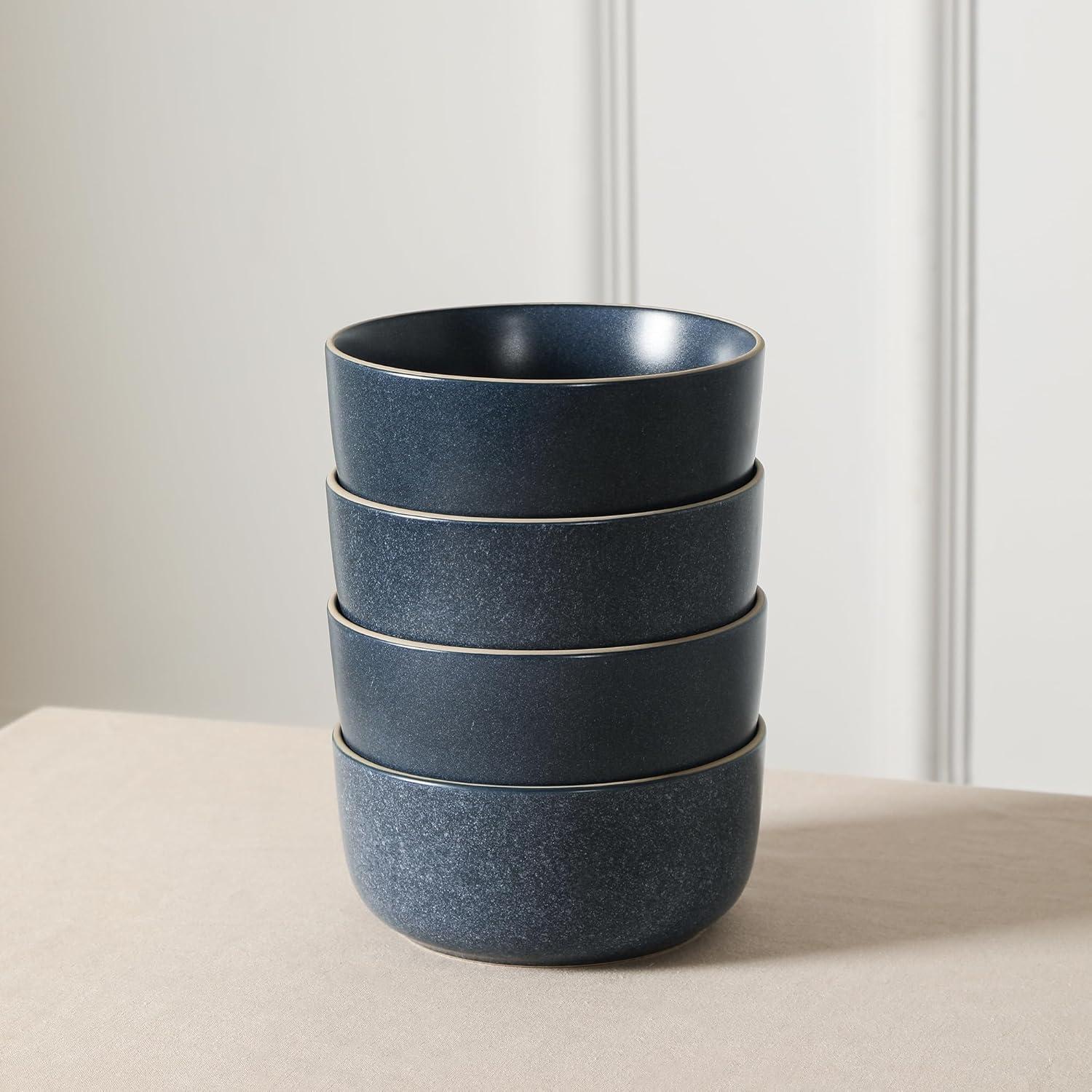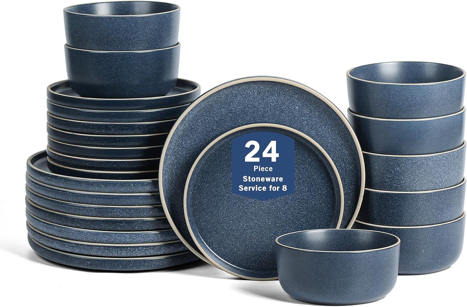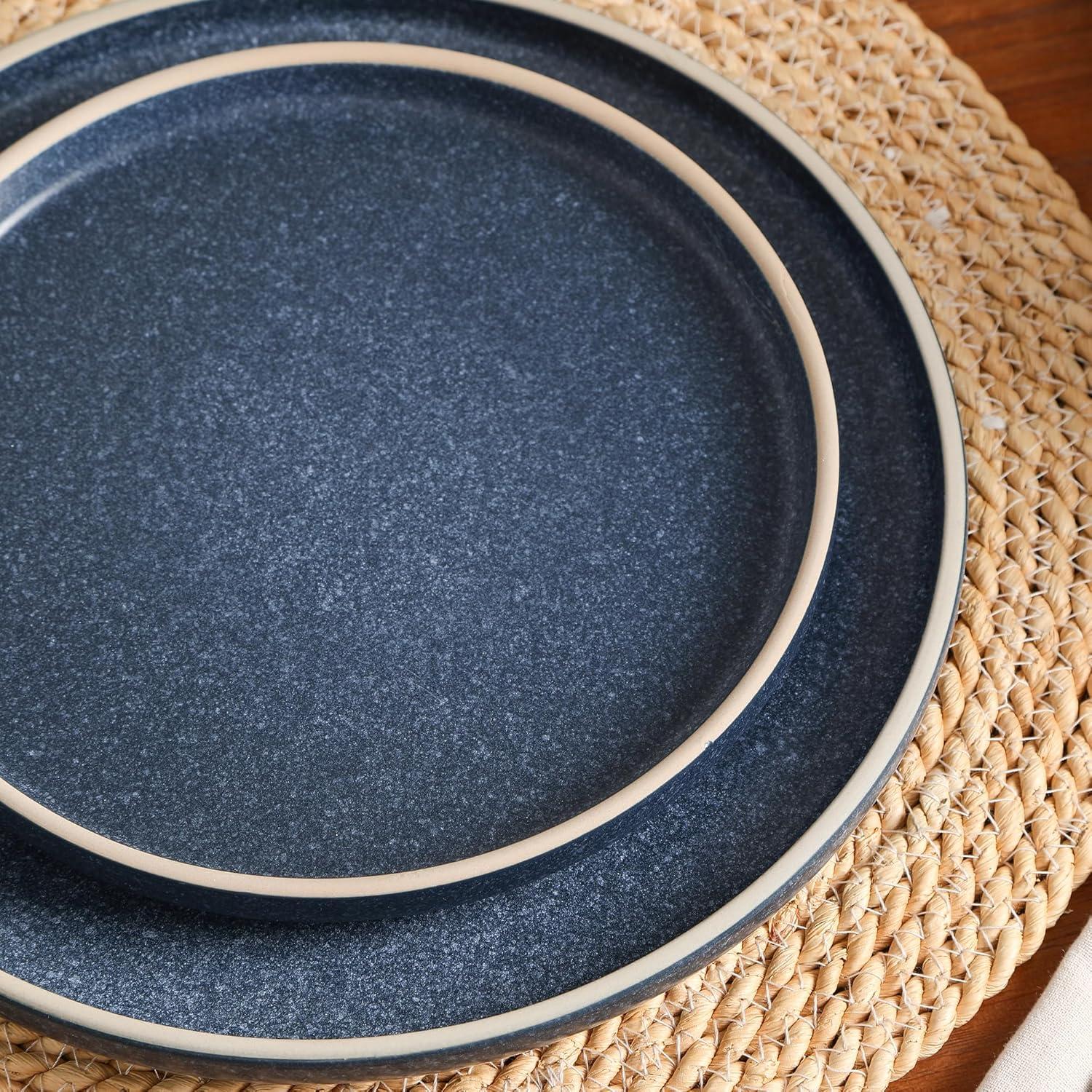 Earth & Clay Amber 12-Piece Dinnerware Set Stoneware, Dishwasher and Microwave Safe Plates and Bowls Set, Dish Set for 4, White Speckled(Blue)