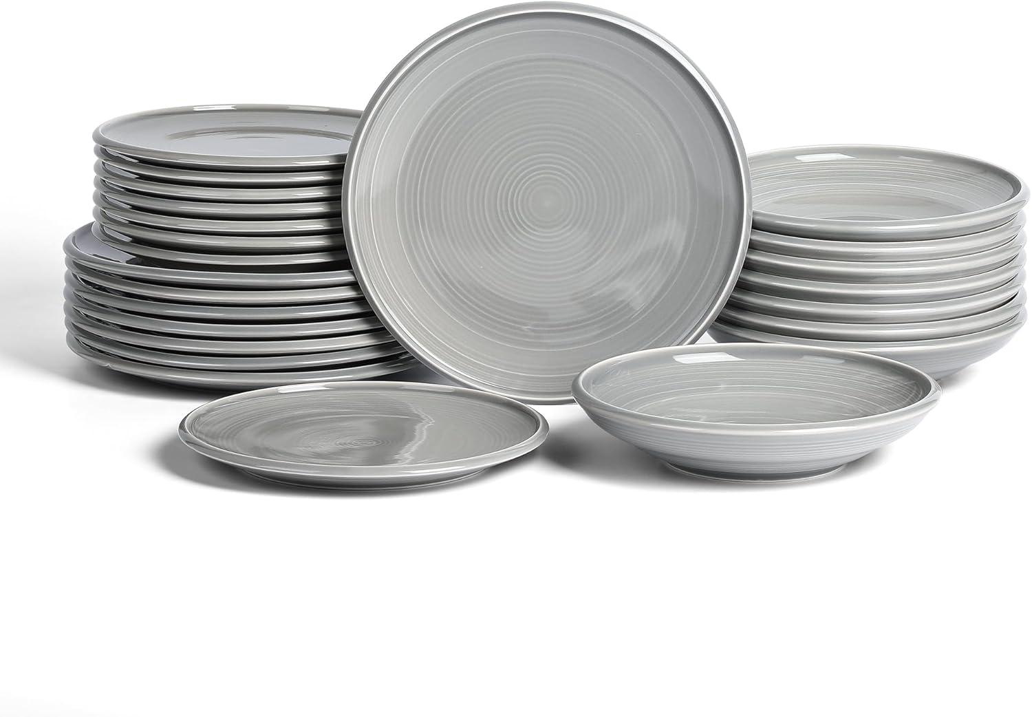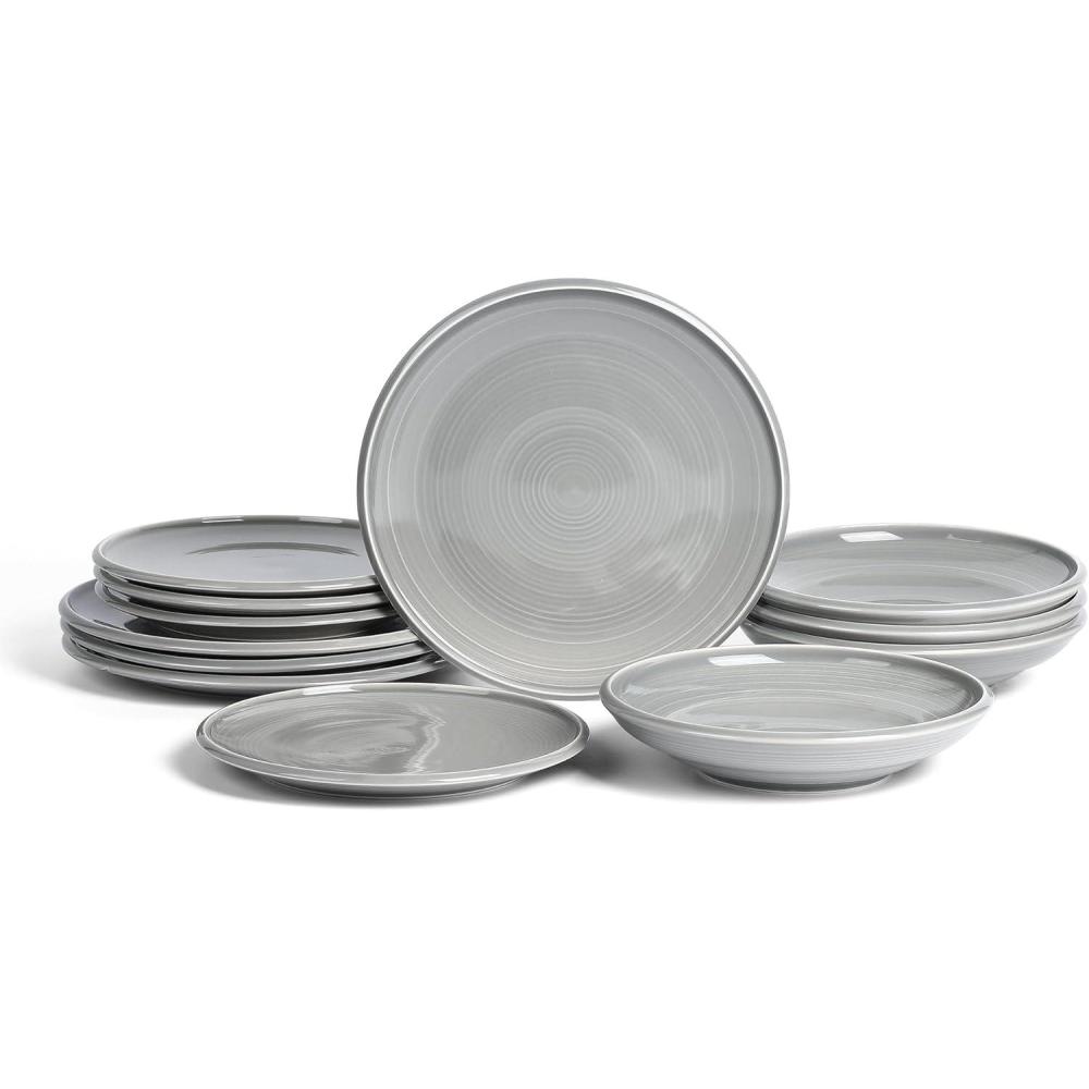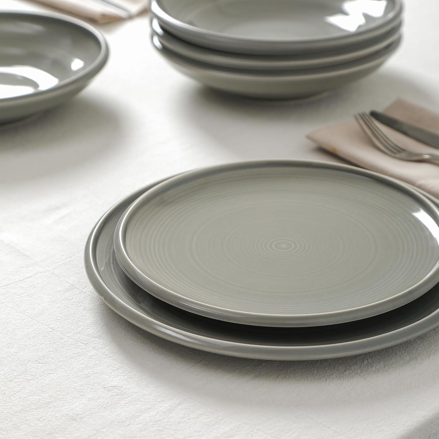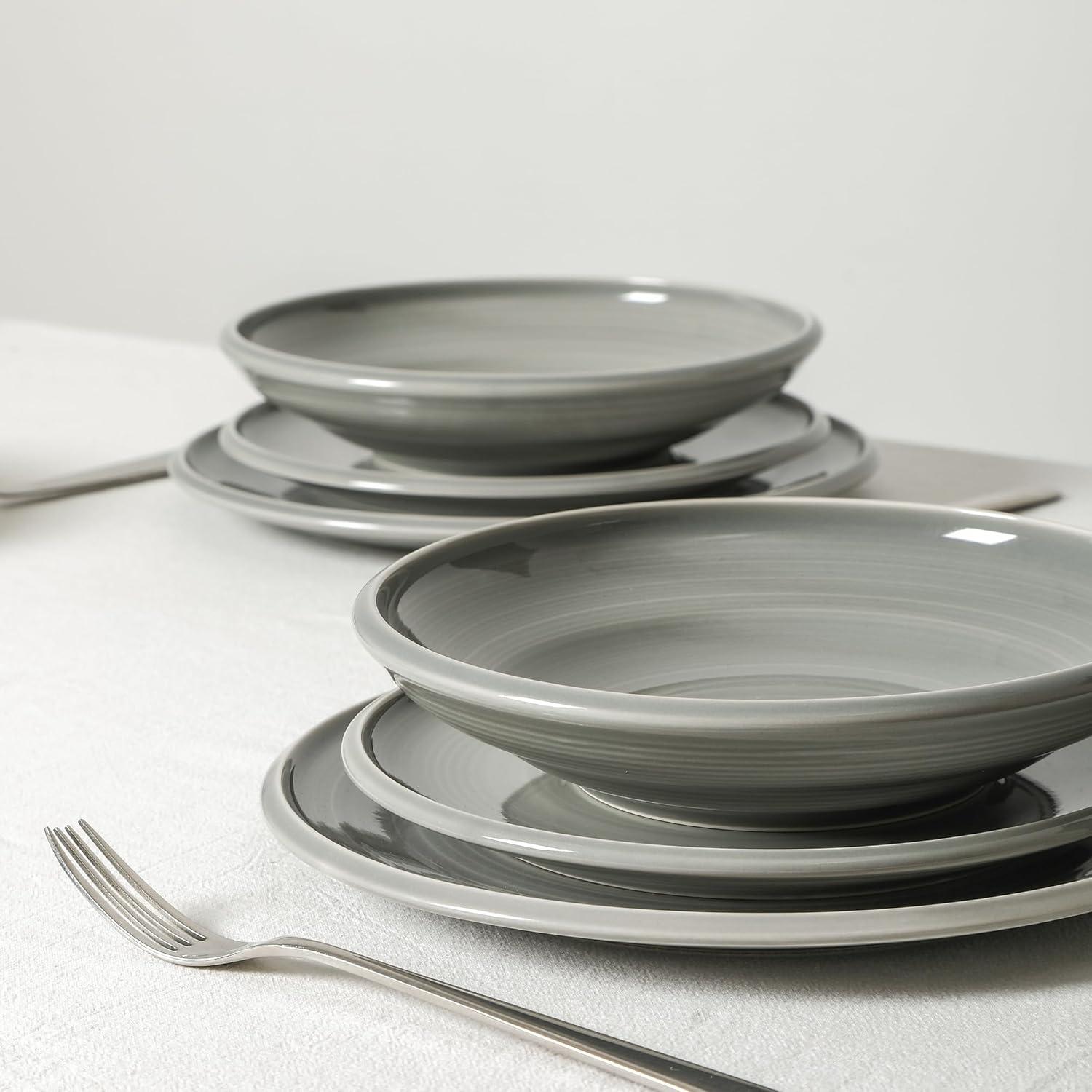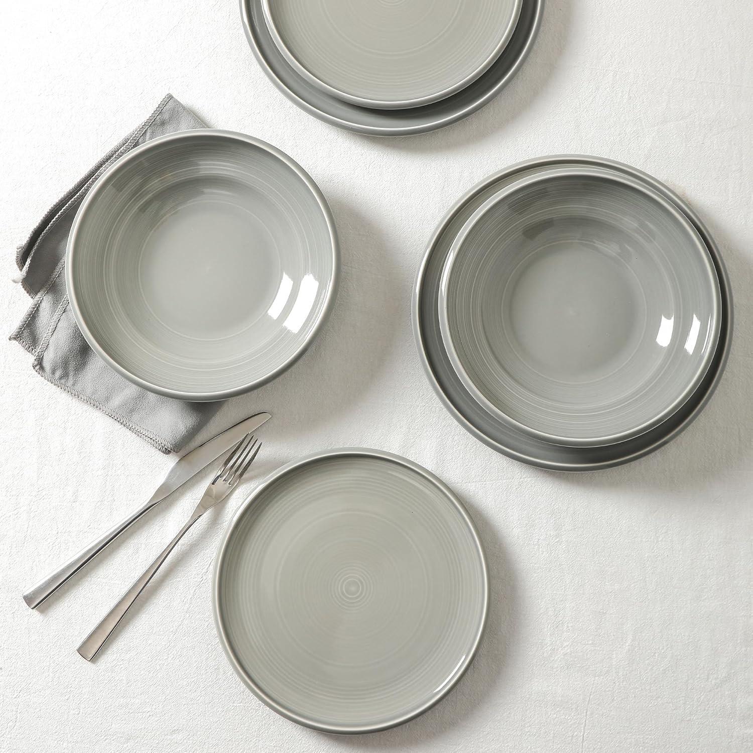 Earth & Clay Celeste 12-Piece Dinnerware, Stoneware, Plates and Bowls, Includes Dinner and Salad Plates, Cereal Bowls, Dishwasher and Microwave Safe, Dish Set for 4, Ivory White(Gray)
