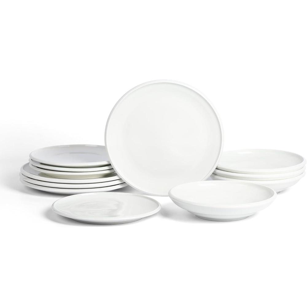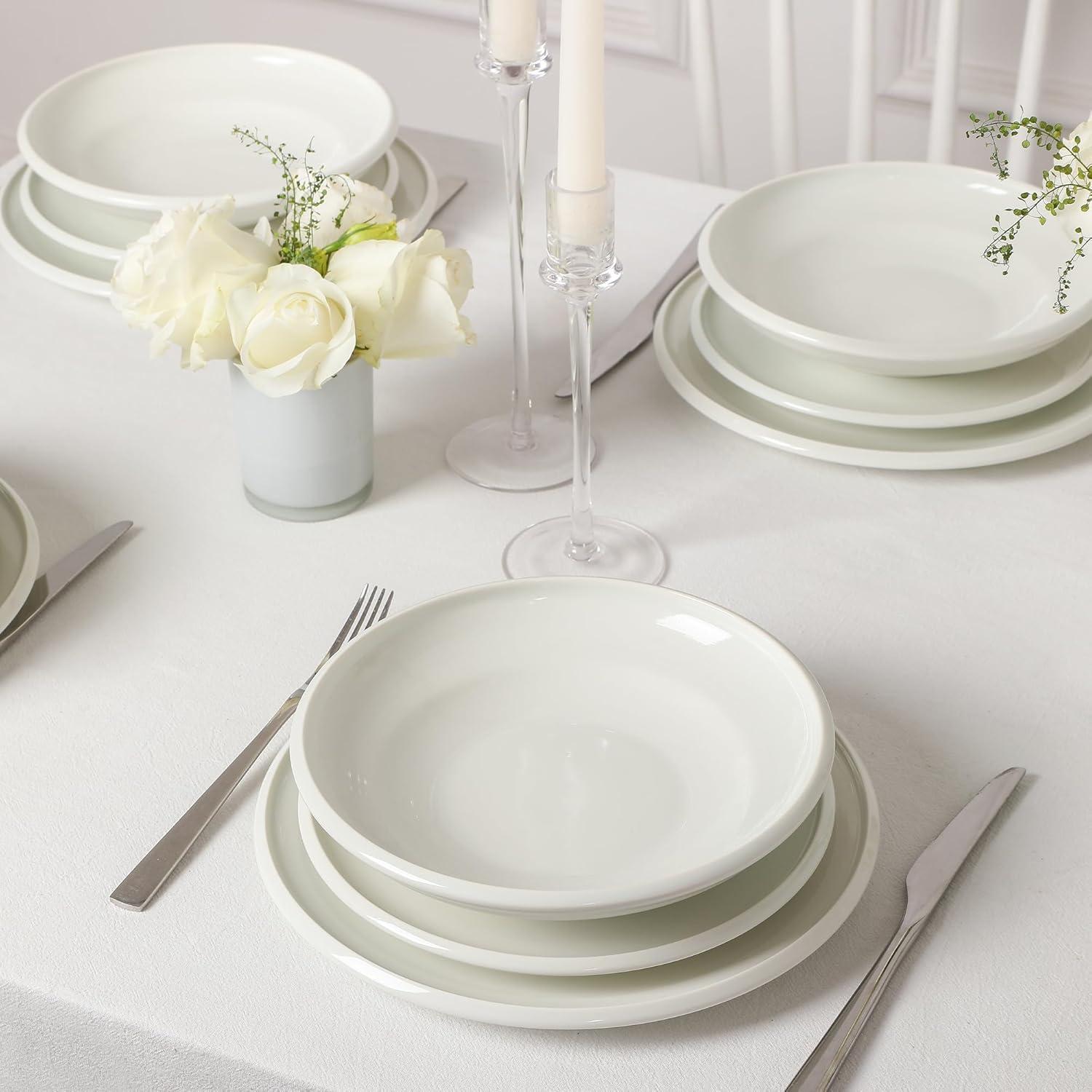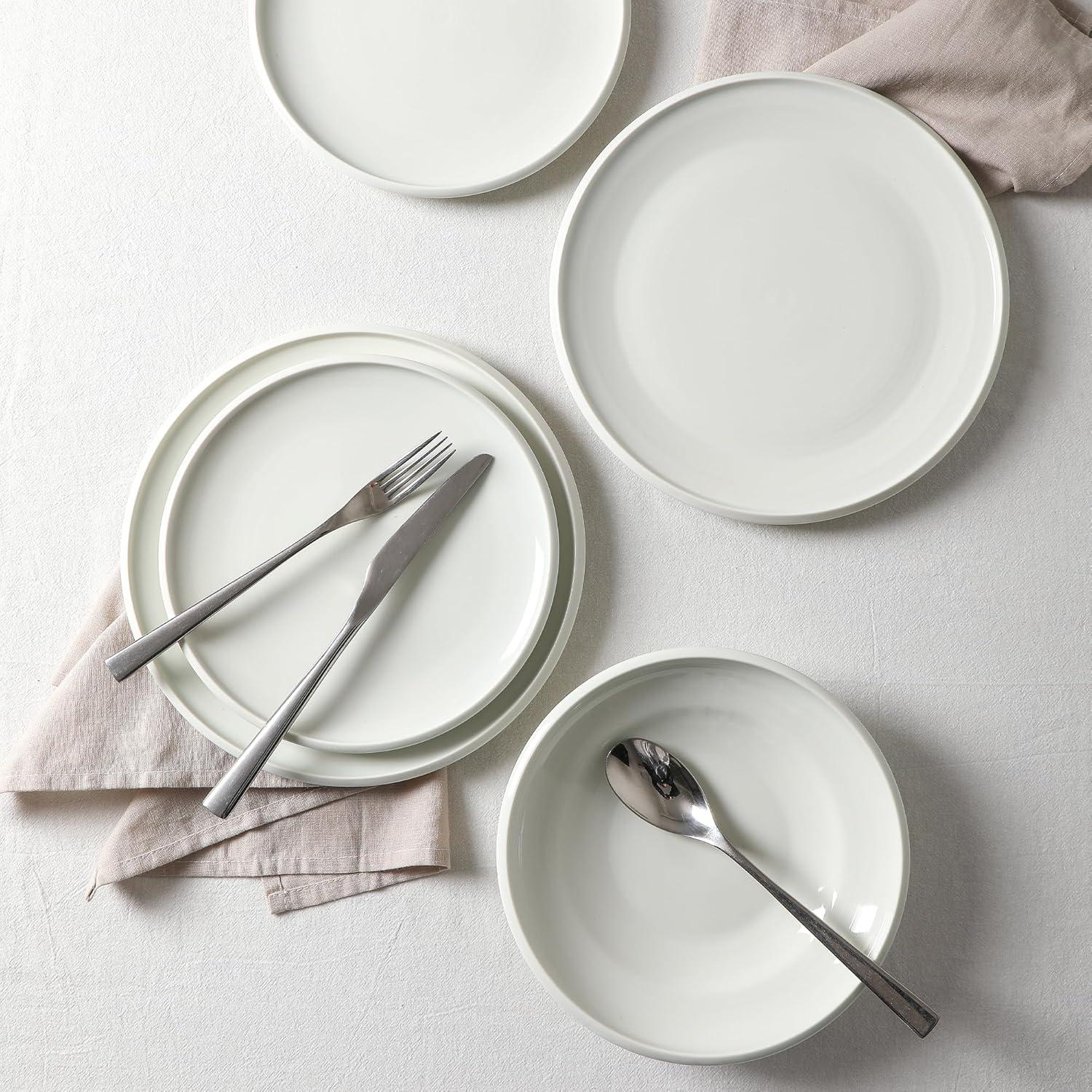Earth & Clay Celeste 12-Piece Dinnerware, Stoneware, Plates and Bowls, Includes Dinner and Salad Plates, Cereal Bowls, Dishwasher and Microwave Safe, Dish Set for 4, Ivory White(Ivory White)