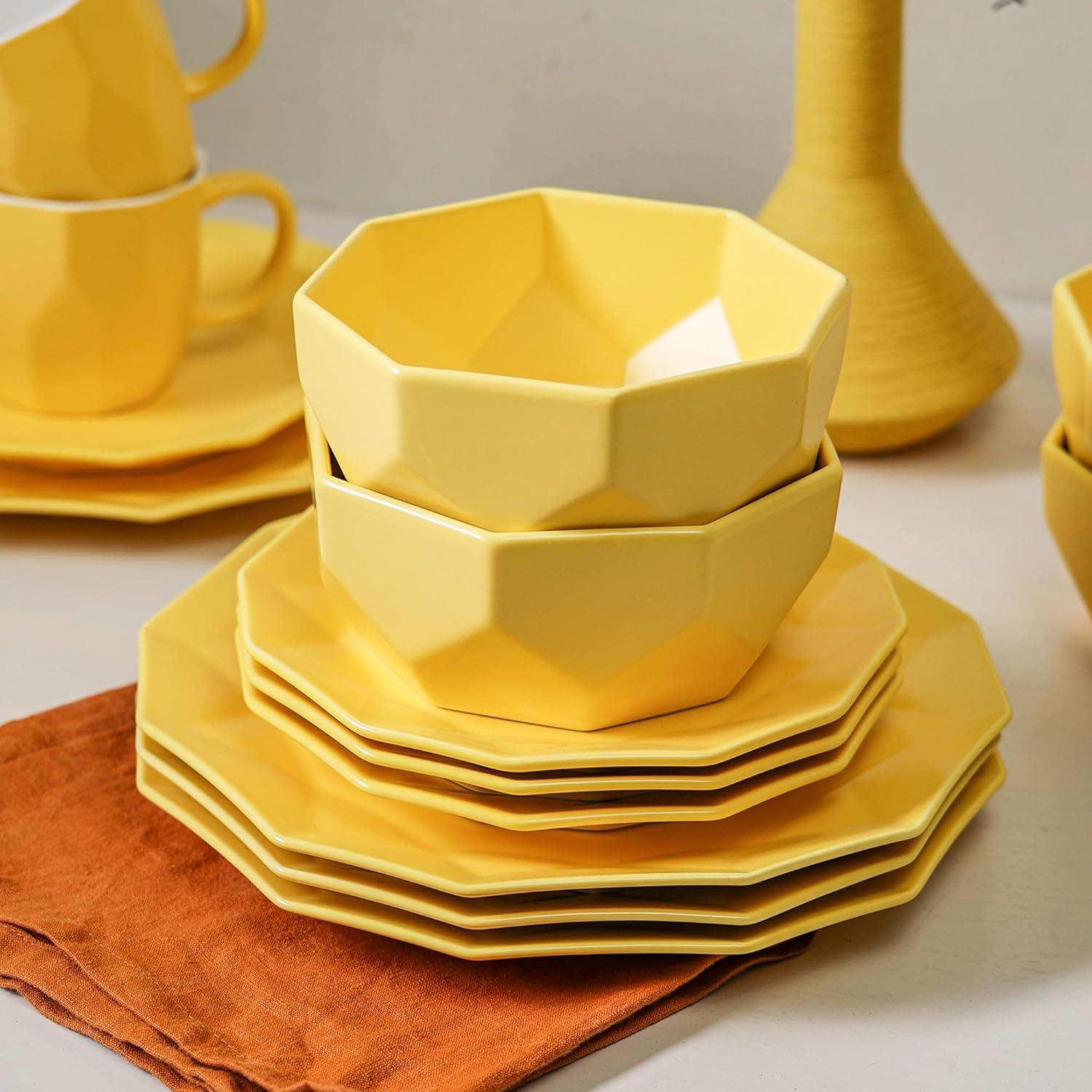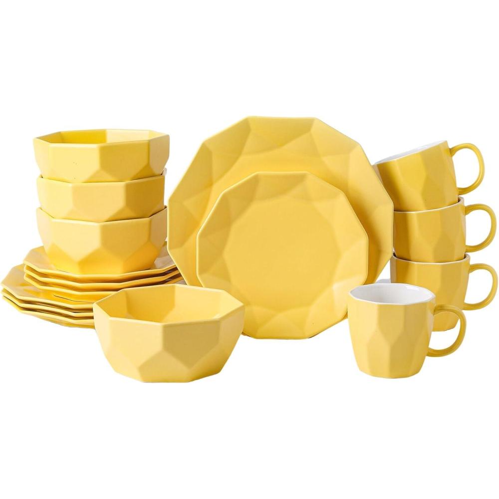 Stone + Lain Jamie Porcelain 16-Piece Geometric Dinnerware Set, Grey(Yellow)