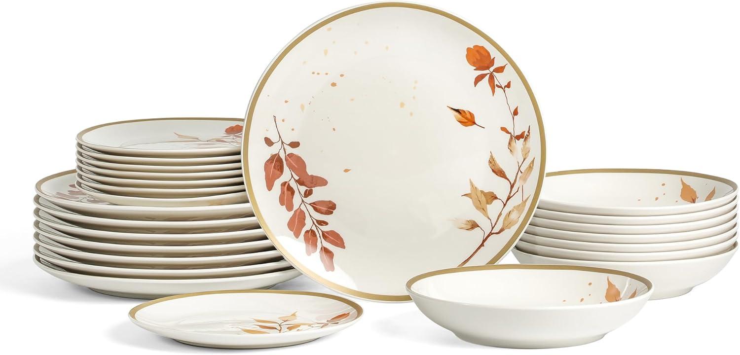 NATURE-INSPIRED DESIGN: Bring the serenity of the outdoors in. The Maple Collection captures the elegance of falling leaves through an intricate, hand-drawn design — each plate featuring a slightly different pattern, just like nature intended. The soft beige tones and glossy finish add a calming, organic sophistication to any dining space.